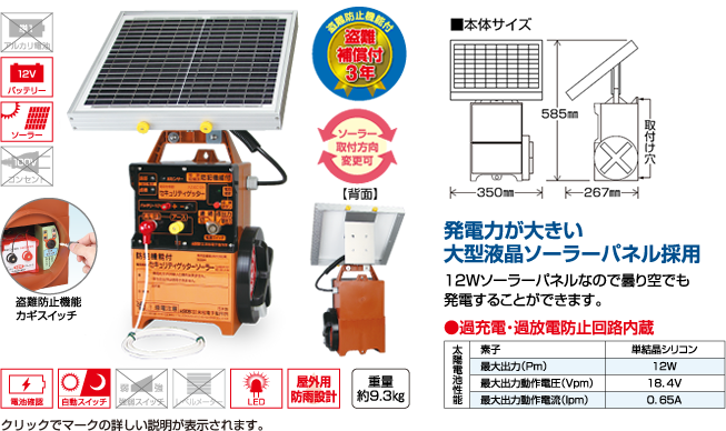 セキュリティを強化した盗難防止機能付の太陽電池式