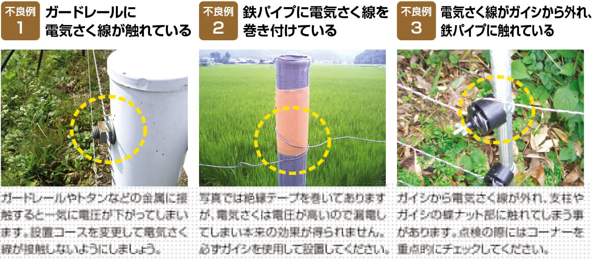 その他にも下記のような電気さくの不良がないか、点検の際にはご確認ください。