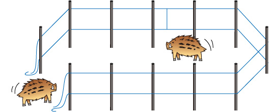 通電の無い電気さく線を、獣が突破すると、電気さくを怖がらなくなります。
