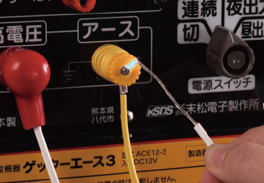 ※火花でテストする場合、マイナス棒(アース棒)の良・不良は確認できないので「マイナス棒(アース棒)がキチンと埋まっているか?」「断線していないか?」などを目視で確認して下さい。