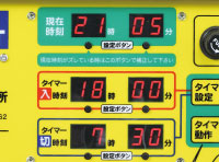 出力の「入」「切」の時間をタイマーでそれぞれ設定できます。現在の時刻も同時に確認できるので設定が簡単に行えます。